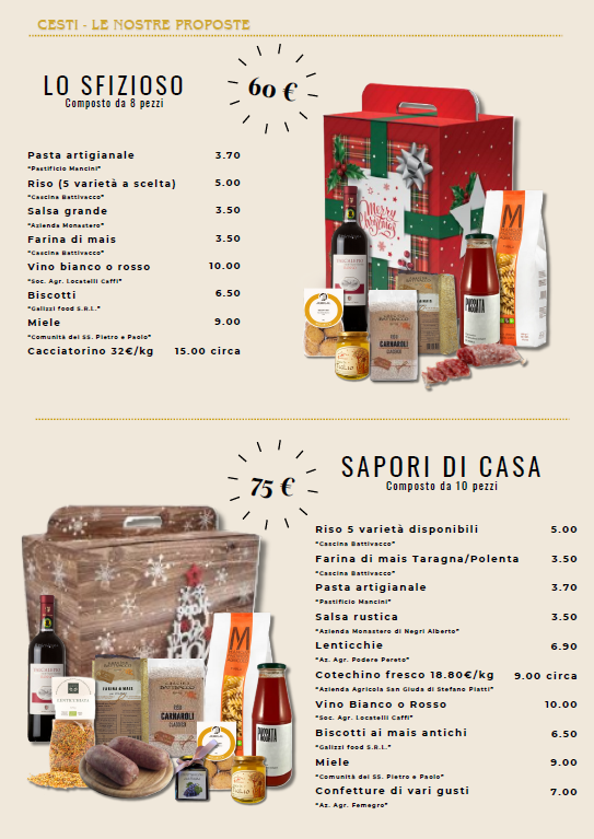 Per Natale abbiamo creato proposte pensate per tutti i gusti — dal più rustico al più goloso — per portare in tavola la qualità e il calore della tradizione, ma le puoi anche personalizzare con i tuoi prodotti preferiti