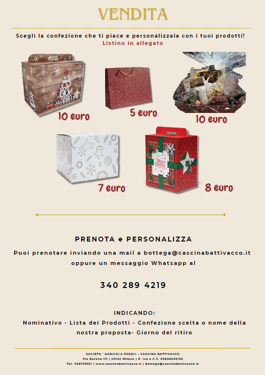 In alternativa, passa a trovarci in Cascina, aperta nei seguenti orari: